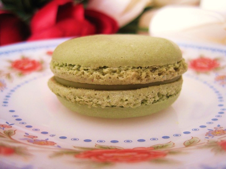 This is the Olive Oil &Vanilla Macaron – the smoothness of olive oil is well captured by the almond meringue, with a vanilla scented ganache filling.