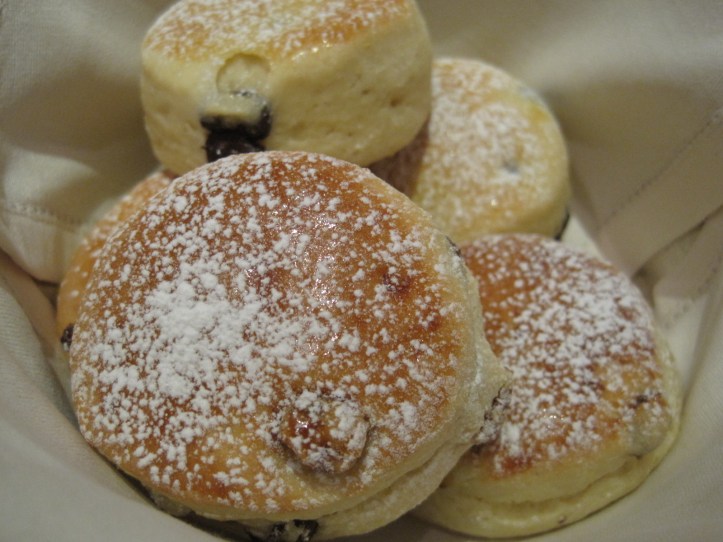 And a high tea is not one without scones, of course. A generous basket of scones of two types – raisins and chocolate – served with Devonshire clotted cream and jam. Served warm, and witheld until after the first tier was consumed.