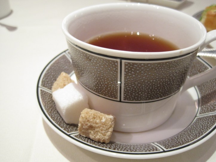 Ideally positioned as a perfect retreat after a bout of Oxford Street shopping, afternoon tea at the Langham London is taken at the Palm Court, a ground-floor dining space. In the mirrored decadence of the serene Palm Court, the melodies of piano and later, a string quartet serenade patrons throughout the afternoon. Formal tables are dressed in brocaded white linens, and surround the cluster of sapphire blue velvet sofas and stools at the centre of the room. The ceilings are high, the seating generously apart, conferring both a sense of space and privacy. Uniformed staff serve the afternoon tea on a floor-standing three-tiered silver service, rather than the unwieldly table-stand commonly used by most high tea institutions that unfortunately block the view of one’s afternoon tea companions.