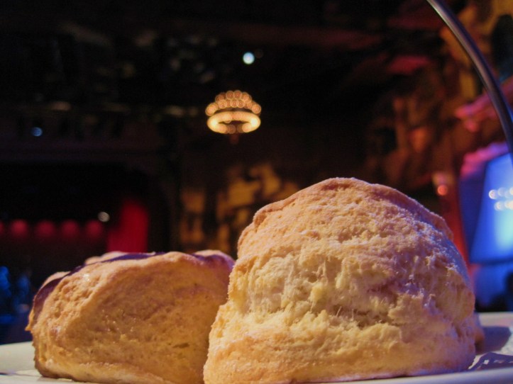 To the scones – generously large and fat, served with jam, marmalade and cream that had been whipped up into the cutest floral pinnacles. We each had one scone, and greedy beady big eyes turned to the dessert buffet.