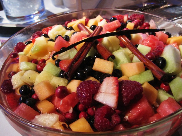 And to finish – MoMo & Coco and related entities each took a small bowl of this lovely fresh fruit salad, served with fragrant cinnamon and vanilla bean syrup.