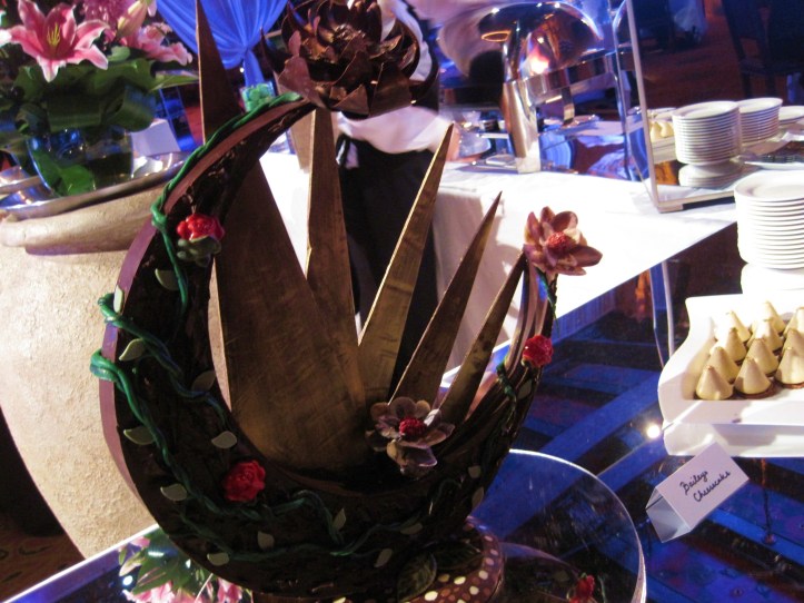 Ok – let’s show you one part of the decadent dessert buffet of irresistibles. Apologies for not taking photos of the other sides of the buffet centrepiece – we are still trying to overcome camera-related etiquette. The centre “C-shaped” figure is a hand-crafted chocolate sculpture. MoMo & Coco were sooo tempted to pick it up and carry it home!
