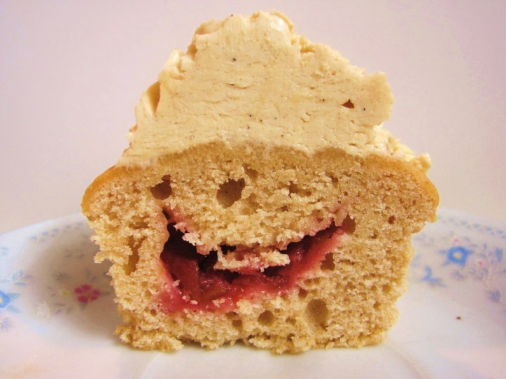 Also from the autumn range, this is the unique Rhuby Red Cupcake. This cupcake is a lightly spiced cake with a smiley face of rhubarb that is guaranteed to blow away the autumn chills, complemented by a frosting of cream cheese swirled with cinnamon and embellished with a cute pink maple sugar leaf.