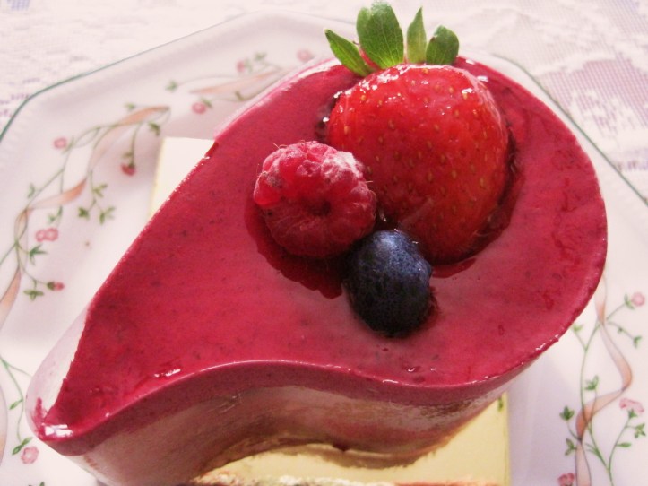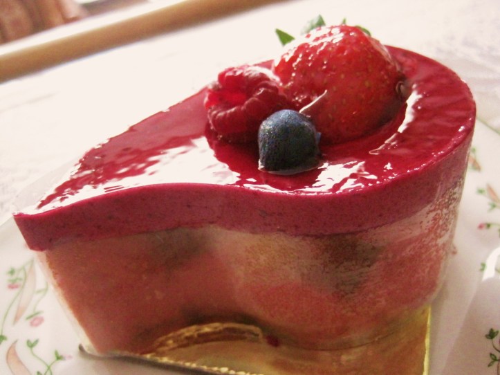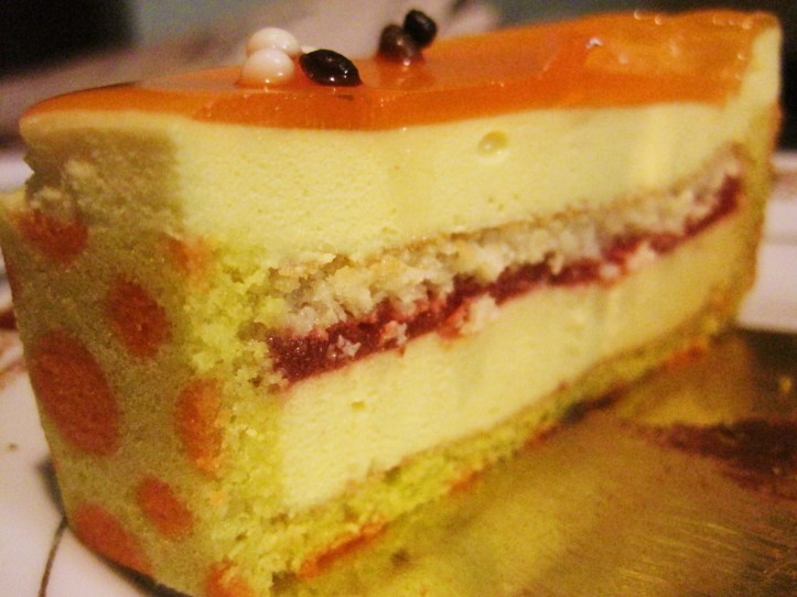 The third irresistible was the love-at-first-sight, Passion de Pierre ($7). Encased in a spot-patterned joconde (a buttery almond cake), the inside revealed a passionfruit mousse, with a layer of raspberry jelly singing through the centre….hmmmmm….irresistible…..