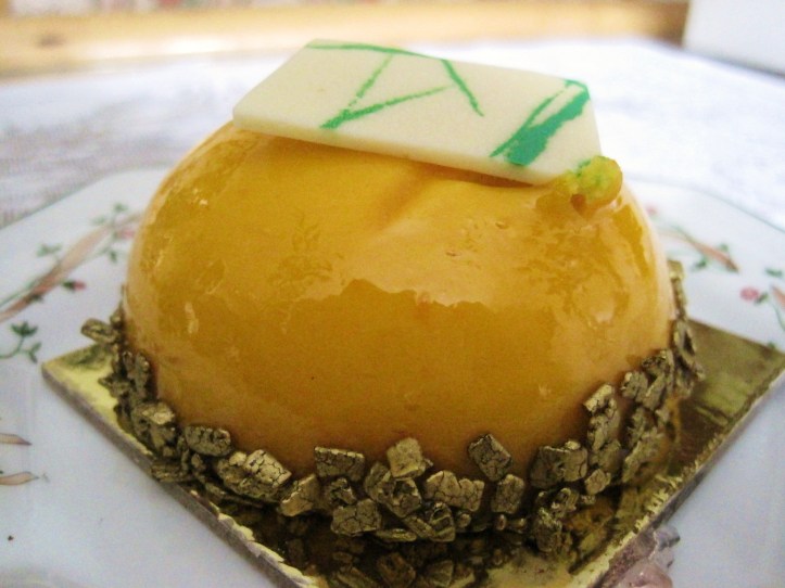 The second irresistible was the aptly-named Le Roi Soleil ($8). Shaped like a coronet, this comprised a robustly flavoured mandarine mousse cake, with a touch of mango and jasmine, and a hemline of little gold pebbles. Its inner cross-section resembled a radiant setting sun, hence le soleil. It is also available at Baroque.