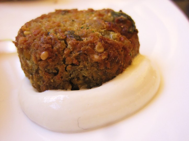 The first irresistible on the third plate was a light panna cotta, perched on a pool of light orange syrup and scattered with poppyseeds to higlight the translucency of the syrup and the smooth custard inside.