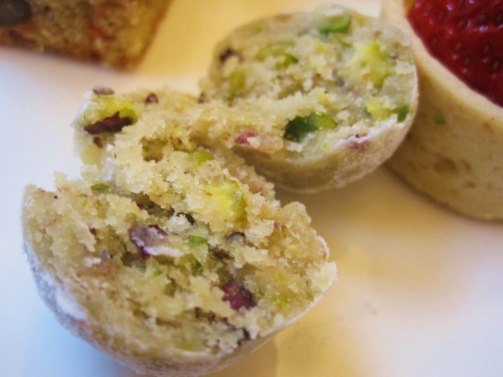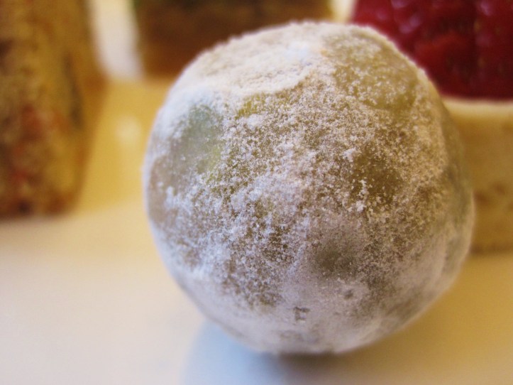 The first irresistible on the second plate of petit-fours, was the Egyptian loz, also known as “almond sweetbread,” made of pistachio and ground almonds, and dusted in icing sugar.