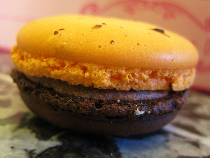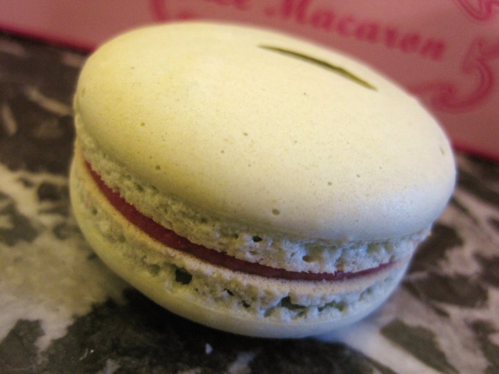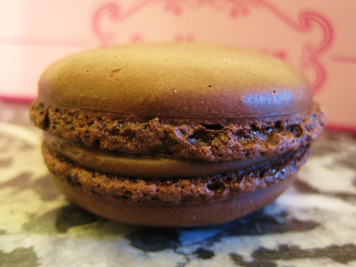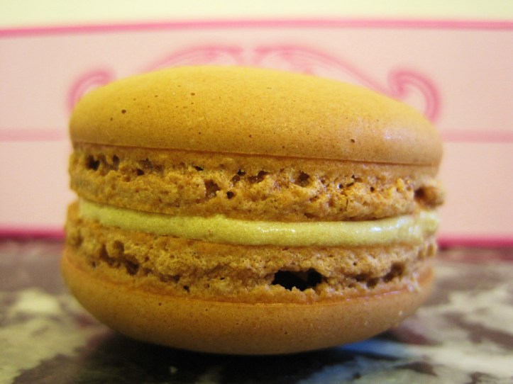 This is the Dark Chocolate Macaron. A very good solid chocolate macaron. If left for a day or so after purchase, the bitter decadence of dark chocolate is fully imparted.