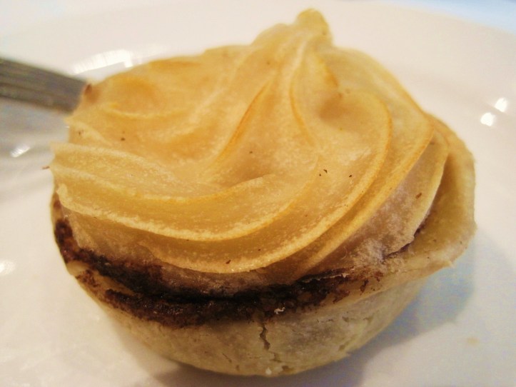 Savouries also included two warm pastries — a dry-ish miniature sheperds pie with a baked twirl of mash, and a filo pastry encasing spinach and ricotta.