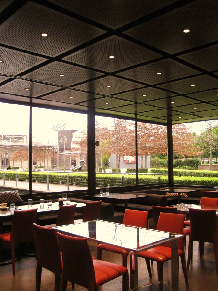 Southbank has long been dominated by bleary-eyed clubbers and light-fingered gamblers, spotted with a handful of extrovertedly over-priced glitzy restaurants catering for those who had the requisite bling-bling and deep pockets to frequent Crown Casino’s Mahogany Room. That shadow still lingers, but a wave of more refined sophistication increasingly laps at the Yarra River’s southern banks. Cocooned within the high stone walls of the NGV and rather as an outcast located towards the back of the NGV, Persimmon is waiting to bear fruit, and what a luscious one it proved to be. Overlooking the minimalistic Grollo Equiset Gardens, it has adopted a slickly modern colour scheme of black and red, incorporating a textural interplay of clear perspex, garnet leathers and noir hessian fabrics.