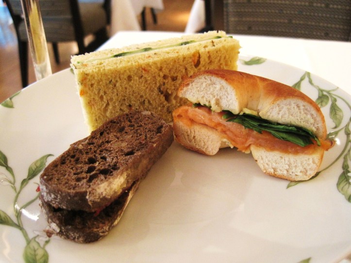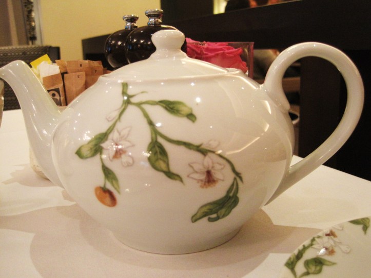 The table setting of the afternoon tea was feminine. Trellis of snow white lillies garlanded the edges of white porcelain plates, tea cups and even the teapot. Attention to detail was also paid to the cutlery, engraved as it was with the cursive Sheffield signature. The tea menu chronicled a mostly traditional array of black, green teas and herbal infusions, as well as two types of “flowering” teas that bloom when infused in hot water. It did not feature the more exotic or rare forms found at for example, the Langham London. Exhibiting a polish often lacking in afternoon teas taken in Australia, service was accomplished, although perhaps a little sparse.