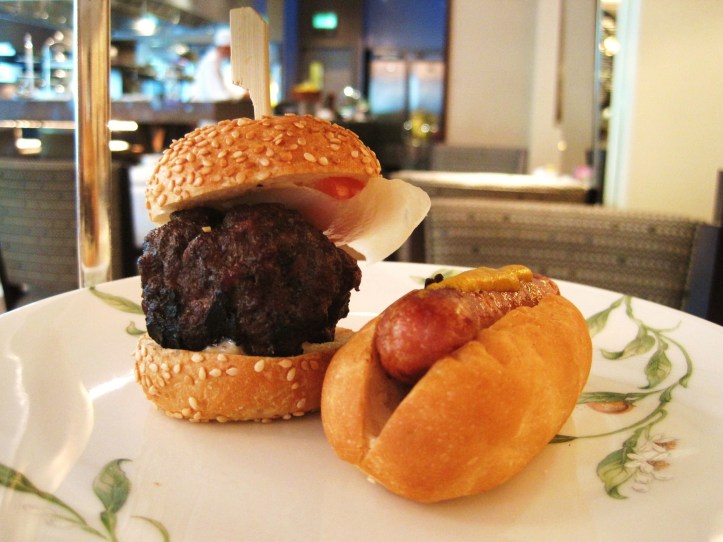 The second tier featured two further savoury items served warm. A rendition of an iconic New York hot dog saw piquant mustard weaved across a rather tasty gourmet sausage, one that was more robust in flavour than the somewhat limp $2 hot dog that a tourist flocks to sample in the vicinity of New York’s Central Park in the quest to tick off that “must-do” item. The other article was an equally memorable mini burger, cooked to succulent juiciness and yielding a desirable grilled smoky flavour. It was a towering miniature, MoMo & Coco struggled to fit it in our mouths. A lip-smacking, stomach-patting sensation, the savoury components arguably eclipsed the sweet irresistibles to follow.