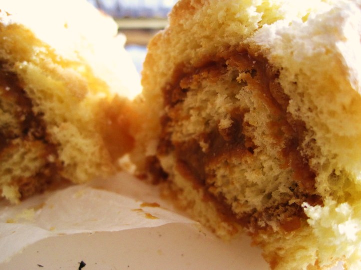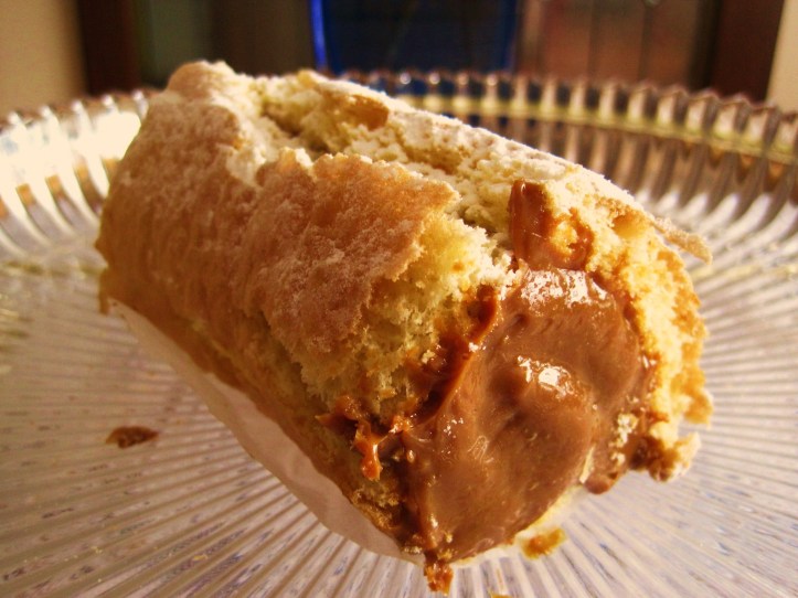 The larger-than-a-fist Empolvado is analogous to an Australian lamington. The sponge is quite airy and inclined to a slight dryness. The lamington’s jam filling is substituted for a luscious slathering of dulce de leche. Variations available at Marciano’s Cakes include the empolvado being dusted with powdered icing sugar, or entirely dipped in milk chocolate, the latter especially guaranteed to send you into a diabetic stupor.