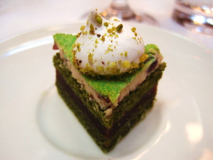 For our second plate, MoMo & Coco selected five irresistibles – a very well-rendered millefeuille that one would be returning to the dessert buffet for another slice please; an airy profiterole spliced with coffee cream; a sweet peridot green cake with a touch of apple and green tea that was another highlight; a fruit mince pie dusted with sugar and butter and mostly bereft of its spiced tones; and the sole allusion to the “Boston Tea Party” theme, a light cheesecake.