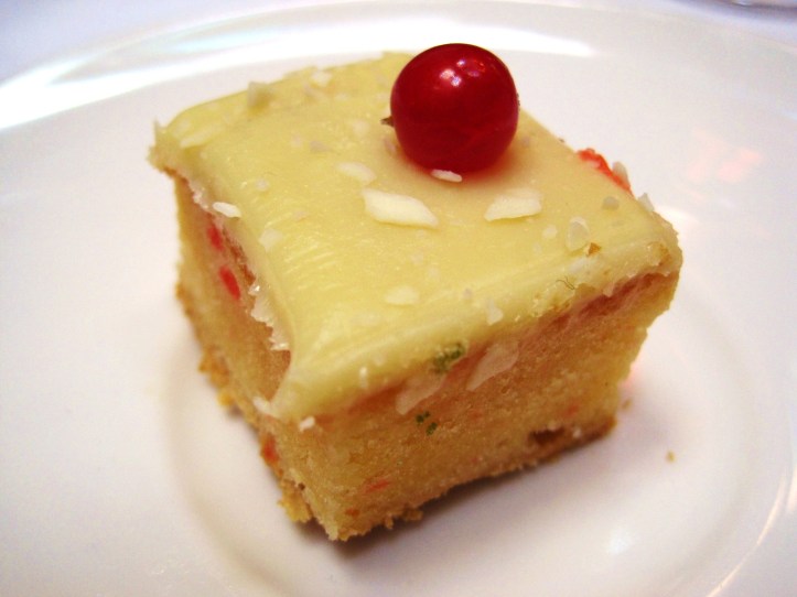 The Grand Ballroom is a lavish space, awash in a typical Victorian palette of caramel, cream, gold and dark rouge. The ceiling is inlaid with sun porticos and art nouveau globe chandeliers. The walls are embellished alternately with elegant arches and long stained glass panels. With the weekend dessert buffet positioned at the centre of the ballroom stretching from one side to another, tables are arranged on either side of the buffet, and are well spaced, serviced by mild-mannered, heavily-accented Sub-continental staff who greet with a glass of moscato or sparkling wine and are attentive, if a little sparse, throughout the afternoon. One should be forewarned that a most displeasing surcharge applies if paying by credit card.