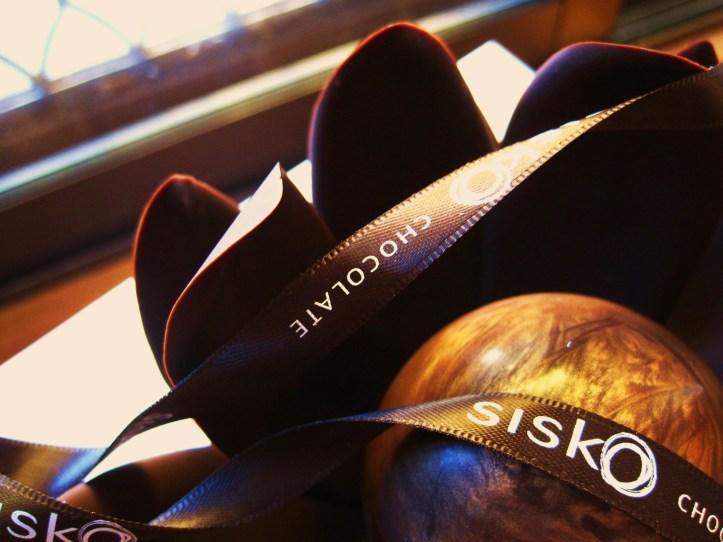 One of two chocolate specialty sweet boutiques located in Melbourne’s affluent, leafy inner-east suburbs (the other is Xocolatl), Sisko is a most unassuming shopfront along the comparatively quieter Auburn Road in Hawthorn. Seemingly closed, it is shuttered by cream-coloured blinds. Inside, it seems more like a showroom rather than a shop per se. A floor-to-ceiling shelf on the right of the entrance holds ribboned boxes of sculptured chocolate flowers, and upon two glass-topped tables are marbled orbs that swirl like mini-gaseous planets, ornamental birds for decorating and hanging, and glass cylinders filled with moulded cocoa pods. Behind the shop counter is an onsite kitchen.