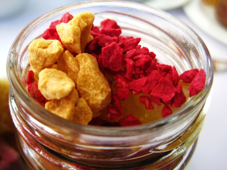 The first irresistible sampled from the Stephane Bour-Number 8 afternoon tea was the St Honoure Choux Pastry. Delightfully light but crisp pastry encasing smooth balls of custard and little raspberry pop rocks.