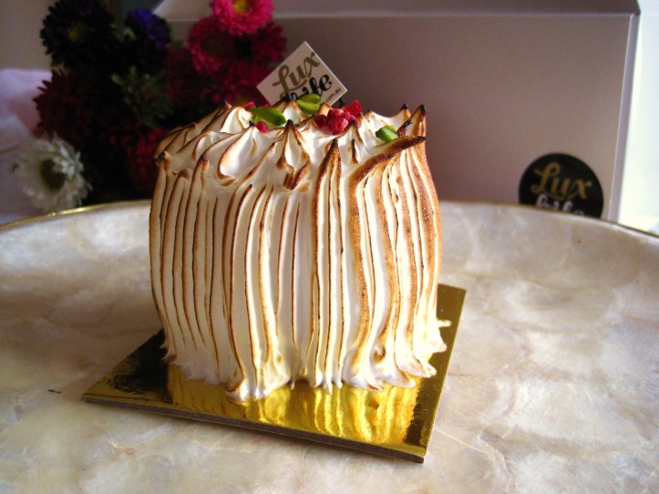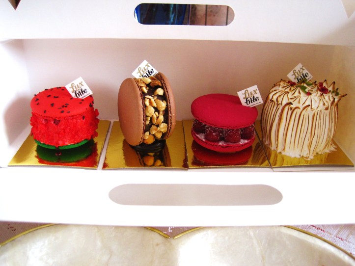 For pret-a-porter, LuxBite’s goodies come packaged in a sturdy, white hand-carry-able box that can fit up to four sweet goodies at one time. No extra charge unlike some other parsimonious patisseries/specialty sweet boutiques (see eg here).