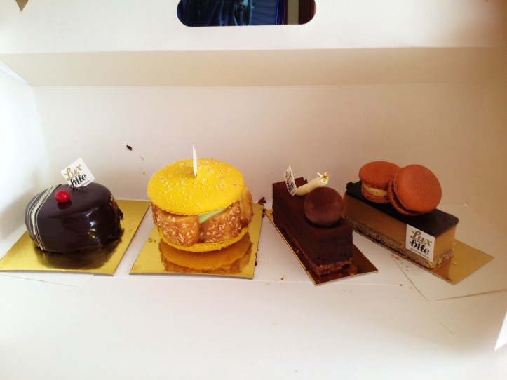 Bypass the macarons but don’t bypass, MoMo & Coco besiege you, the cakes at Luxbite. Over a number of visits, MoMo & Coco have sampled the full repertoire of Luxbite’s cake range, of which we shall photograph and describe a little below. No boring traditional cakes, no mousse-only things.