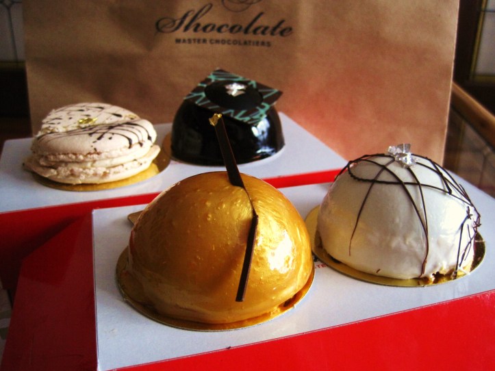 Located off Brunswick Street, Shocolate is a chocolatier that has established itself in a little nook amidst hipster grunge and bohemian whimsy. It’s a very very small space, with floor-to-ceiling shelves lined with chocolate shards and truffles boxed in plastic cubes, and twin glass counters — one filled with trays of miniature chocolate bites and the other with mousse-cakes and a bright array of flat macarons.