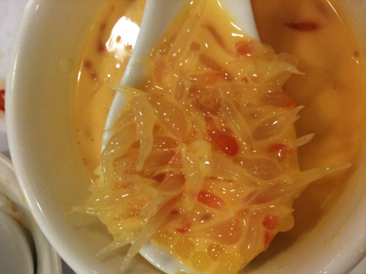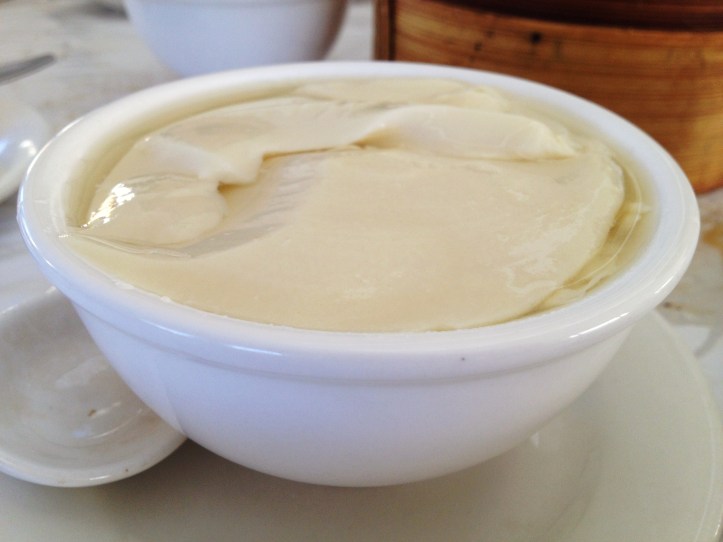 The serving of dou fu fa is inelegant. Large vat, long scoop, splish and splosh, it comes with some very evocative imagery, from Oliver Twist, refugee ration queues, to school canteens. If served warm, in a slightly sweet, slightly spiced, gingery, clear water broth, upon which floats a mass of silken, slippery tofu, it is the perfect end to yum cha. Like a slightly sweet brew of tea, eaten with a shallow scoop, requiring no further clumsy chopstick usage. The problem is that many restaurants in Melbourne overbalance its components: the broth is often sooooo sweet that it requires a pot of the strongest tea to balance it out…and worse, induces a terrible plaque invasion in one’s mouth. Otherwise, the tofu is just the wrong type! Yes, dear readers, the tofu eaten in soups, in fried dishes, in this dessert, by Northern Chinese, by Southern Chinese, by Japanese, by those tree-hugging, left-leaning vegetarians are all different types.