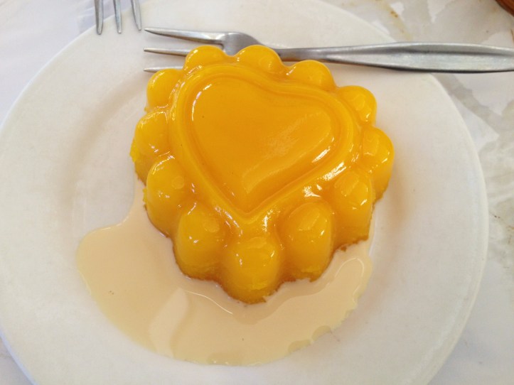 If you talk to a Londoner, pudding is a rich cake saturated in a similarly rich sauce. If you talk to a Hong Kong local, pudding is something between custard and jelly, but definitely not flour-based cake. At yum cha, puddings are usually infused with sweet mango, refreshing coconut or the twang of almond. It may be presented as a mix set in a bowl or as a pretty moulded shape. Variety abounds, but the best renditions are ones with a moderate flavour and a light, smooth texture. Too strong a flavour in a mango or almond pudding especially is quickly nauseating, and too heavy a use of gelatin is an obvious crime. Evaporated milk is optional — we advise it only for the very sweet-tooth-inclined.