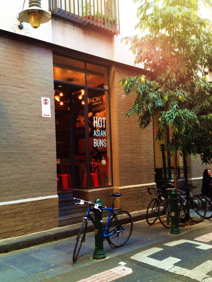 Some ubiquitous food items have very interesting stories behind them. For example, the croissant is supposed to symbolise the eating of the Islamic crescent. Tea was apparently discovered by a half-animal divine creature who could see the cleansing effects of tea churning through his transparent stomach. We were once told the story that a great military strategist during the Three Kingdoms Period in ancient China ”invented” the baozi to resemble his soldiers heads (complete with topknot no less) as an offering to appease the spirits. Indeed, the other name for (unfilled) baozi is mantou (lit trans: head)! Bamboo trays steaming with round pillows continue to be a heart-warming sight throughout China. For the record therefore, NY’s Momofuku did not invent the bao…nor did Melbourne’s Golden Fields, and if we read another so-called food writer/lover who believes otherwise…they have their own head wrapped in a bao! In China, for daily, take-away purposes, the da bao overflows a large fist size and is ideal for lunch, while the smaller sized ones are more commonly seen in restaurants and are more appropriate as snacks. Furthermore, the filling of a baozi can point to the origin of it. Northern China is home to plain, unfilled baozi in many shapes, whereas in the South, because of a richer history of agricultural produce, baozi are formed with a myriad of fillings, from pale chicken, pickled vegetables, rice soup, and meatier barbeque pork (char siew) baozi. At yum cha (and sometimes in Chinese restaurants), there may be sweeter bao on offer including: dousha baozi (red bean paste bao), lianrong baozi (white lotus paste bao), zhima bao (sesame paste bao); and naihuang baozi (yellow milk/custard bao). If you visit Malaysia or Singapore, the kaya version is i-n-c-r-e-d-i-b-l-e. In just under a month, two specialty bao shops have popped up in Melbourne. The first was WonderBao, located in a gritty, graffiti-ed laneway on the outskirts of the CBD, but just perfectly within reach of budget-minded tertiary students. And then a second specialty bao shop, BaoNow, opened a fortnight ago in another laneway. BaoNow is opposite one of MoMo & Coco’s favourite Melbourne cafes — Hardware Societe (see our previous review here) — and just around the corner from the newly-opened Sydney Malaysian cafe-restaurant stalwart, Mamak (review forthcoming).