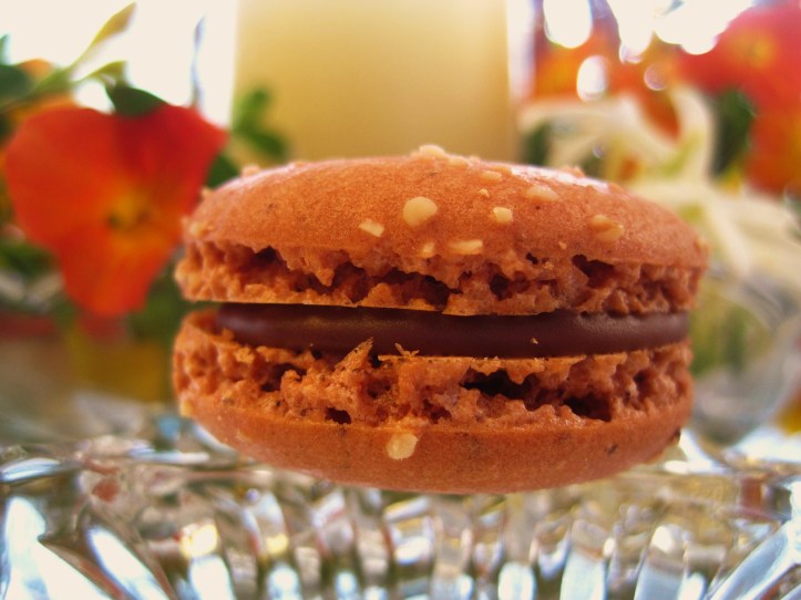Studded with tiny nut pieces, the Noisette Macaron requires a stronger hazlenut flavour in its shell and ganache filling. It is mostly a sweet sweet round critter.