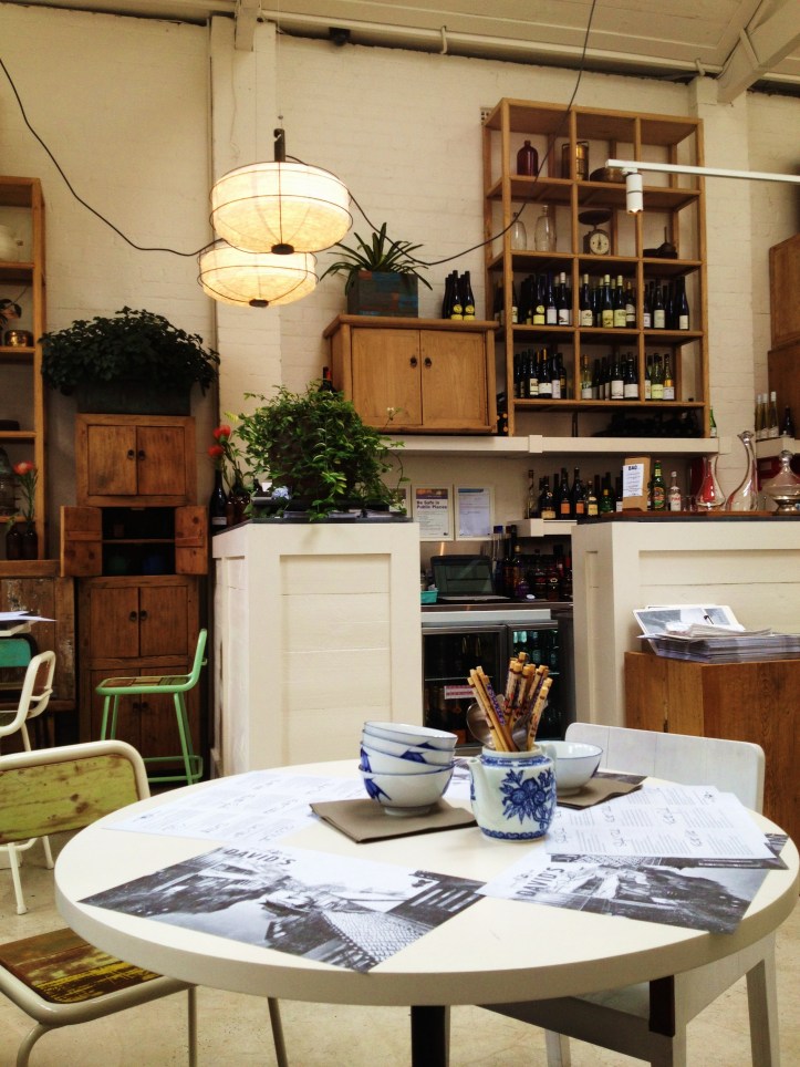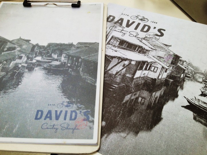From a palatial atmosphere to rural China, head down to David’s, an inner-city restaurant that used to follow the tune of a typically furnished Chinese restaurant, but recently switched and embraced a peasant aesthetic. David’s is no longer the place to take your Chinese parents…unless they are of the more open-minded type where impressions are not made by appearance alone. It is the complete antithesis of Quanjude — stark white with a spartan feel notwithstanding the clutter of unfinished wood shelving, globular grated lighting that reference lanterns, tin tables decked out with with DIY cutlery tin, sepia photographs and blue-white porcelain of a far simpler design than typical Ming Dynasty-era Jingdezhen porcelain. Service at David’s generally lacks the presence, polish or promptness as that experienced at Quanjude. They are certainly friendlier though.