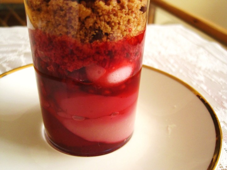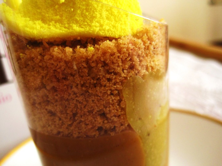 One of our first dessert reviews all the way back in 2011 featured a newly opened sweet boutique called Burch & Purchese. When we first visited it, it was an inconspicuous blip on the Melbourne food radar. It didn’t even have its neon-pink signage up yet. We nonetheless recognised it for its cutting-edge and experimental approach to dessert craft, incorporating a myriad of flavours and textures into a single sweet creation. Shortly after that first visit, with thanks to the strange phenomena that is the Masterchef circus, Burch & Purchese became a Melbourne dessert draw-card. It has since extended its dessert range to encompass not only the mousse-cakes that we first sampled, but also a range of open chocolate bars, terribly addictive but out-of-the-reach-of-children’s-pocket-money confectionery (eg, salted caramel chocolate bullions, chocolate lollipops, popcorn honeycomb rubble), baking miscellany of the type that you will not find at your local supermarket (think freeze-dried fruits) and dare we say… a bisected hazelnut and salted caramel spread that if metaphorically spread on the Australian dollar, ought to stop its depreciating value slide. Of late, Burch & Purchese has also hosted 4-course dessert degustation evenings. With each dessert course paired with an alcoholic beverage, it’s $95 pp (spiked to $130 pp recently) price tag could possibly be justified. However, for a non-drinker or a person with a very low alcohol threshold, paying that same price because there is no non-alcoholic option just didn’t sit well with these Dessert Correspondents. So, we did our own, a D-I-Y Burch & Purchese dessert degustation!