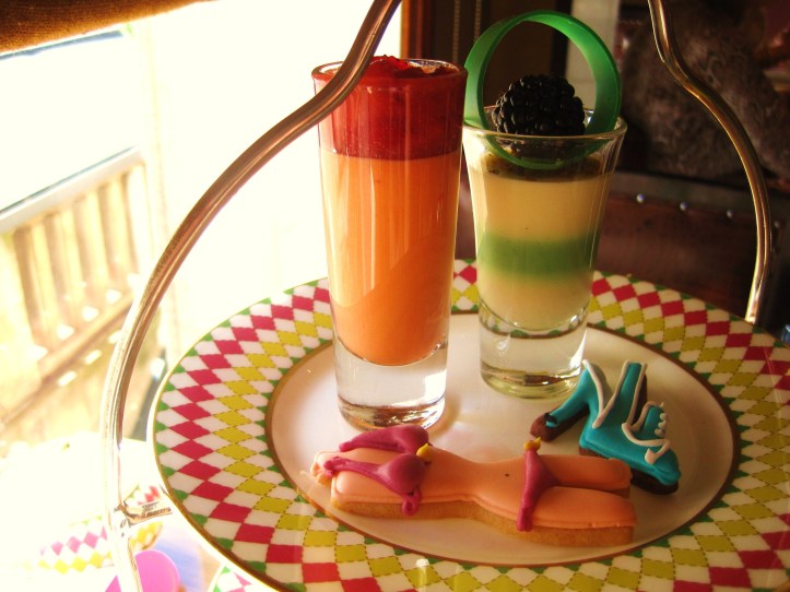Are you in sugar heaven yet? Wait, there is still the top tier, yes! After the serious indulgence of the middle tier, the top tier of the afternoon tea stand was a little lighter. There was a Dolce & Gabbana pistachio and vanilla striped pannacotta in one glass tube topped with a blueberry and a chocolate curl, and a vibrant Oscar de la Renta peach bavarois layered with sweet strawberry compote.