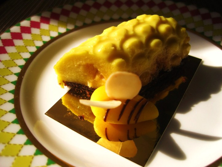 The fourth sweet on the middle tier of the afternoon tea stand was one of our favourites. Appropriately show-stopping in the way that most Alexander McQueen creations are, a little marizipan bee sat upon an embossed, honey-flavoured cremeaux log. It was springtime on your plate, in your mouth. Delightful.