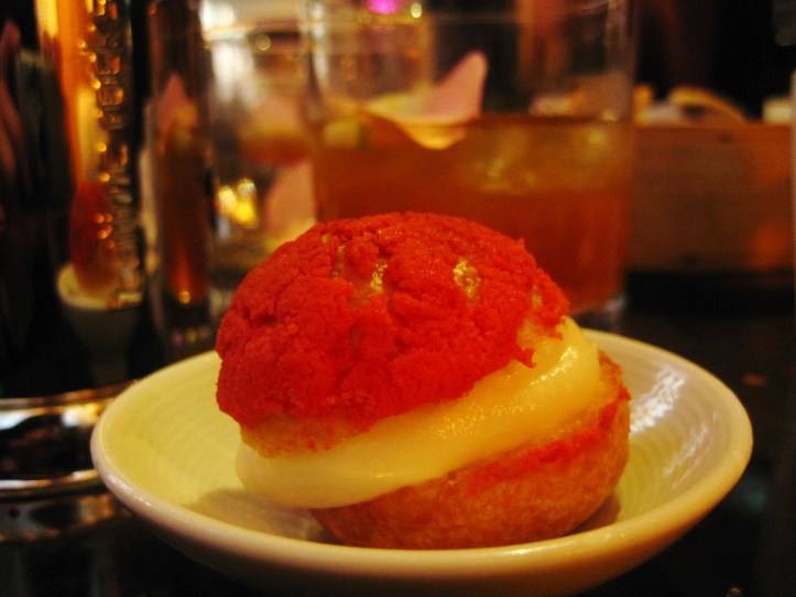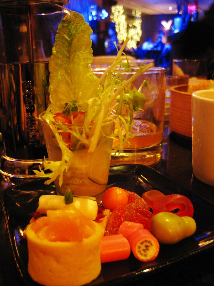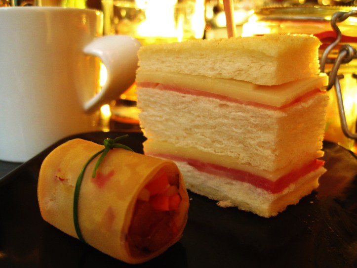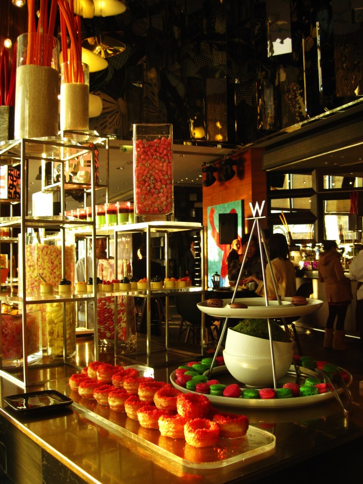 Reporting from HK, these Dessert Correspondents were recent participants of what must be the craziest afternoon tea this side of the world (i.e. the Asia-Pacific region). Forget your 180 degrees, ruler-cut ribbon sandwiches, scones with perfect circumferences, dainty tartlets and cake slices in a hush-hush, cannot-hear-a-fork-drop setting. Take tea at the W’s Hotel Woo Bar in Hong Kong, and the tables are entirely turned upside down and inside out.