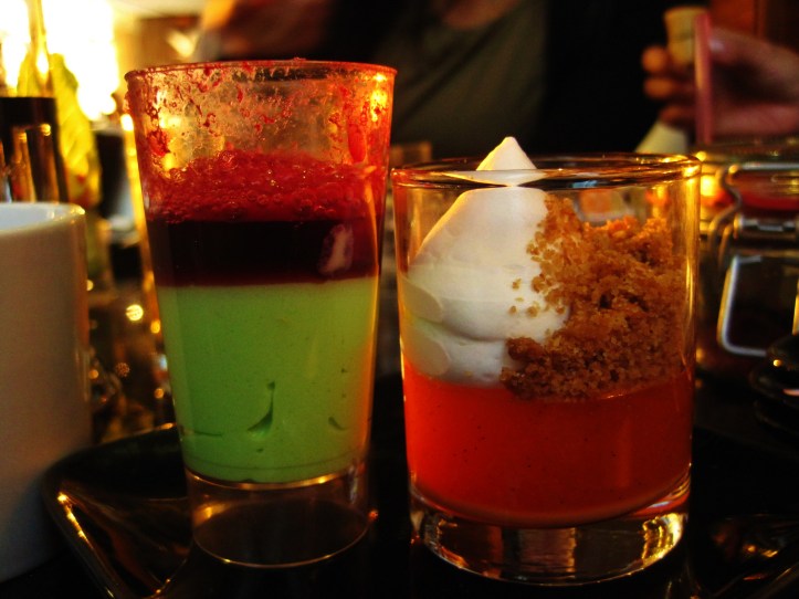 Have you seen savouries like these before? If we were to detail each of the 30 items, this review will become an online monotony. So, in summary, let’s say that everything was different, quirky, fun and must-try. Of the menu items listed below though, our favourite was the “French Duck, Lavender, Purple Potato Crumble” in a smoked glass, the “Mojita, Prawn and Mint” gel globule, and the super-kawaii “Beijing duck bun” that resembled the ever-so-trendy gua bao bun. Aside from a popcorn machine, and also syringes and tubes filled with flavoured gels and syrups that you can squeeze on whatever whenever (tongue-in-cheek of course0), other savouries included: