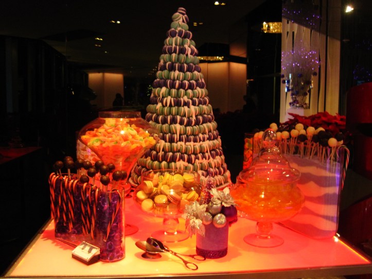 As addicted, insatiable sweet tooths however, this Dessert Correspondent’s attention was entirely captured by the dessert buffet. Have you have seen one like it? There must have been over fifty different varieties — traditional Christmas pudding simply dripping in intoxication with brandy custard, beautifully embellished yule logs, gingerbread men (cinnamon and chocolate) next to towering white chocolate fountains, platters of mince pies, stollen bread, macaron towers, cupcake towers, garden beds of cake pops and candy cane, gummy and other sugary confectionery guaranteed to send a dentist to a cardio-surgeon, and….made-to-fire creme brulee pots! The show-stoppers were however, the individually crafted miniature desserts. Boozy rum baba, champagne strawberry jelly with popping beads, mulled wine and egg nog tartlets, red wine chocolate mousses, peppermint chocolate gateaux, cranberry and raspberry custard profiteroles, black forest trifles, spiced pumpkin and pecan slices…..we are getting hungry again re-visiting this experience in writing.