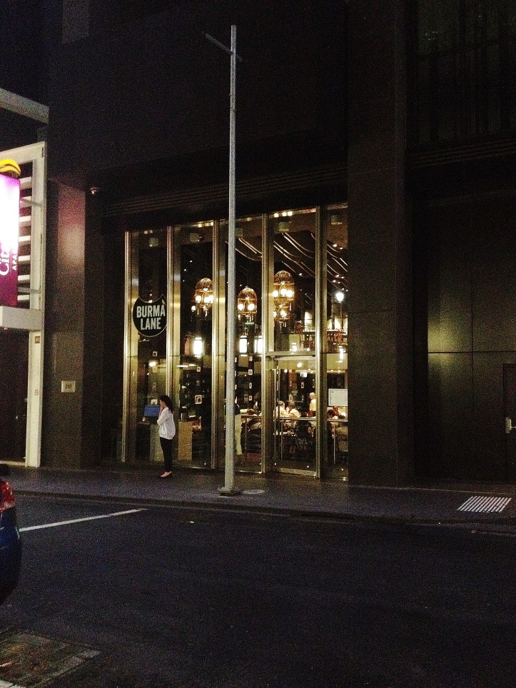 If there is one cuisine type that Melbourne does particularly well, over and above all the other “food cities” of the world, these Dessert Correspondents would say, modern Asian, or specifically, modern South East Asian. With the likes of our old favourites of Gingerboy, Coda, Easy Tiger, Longrain, to some extent Chin Chin, Red Spice Road and Circa, and the melee of more casual (less quality) options launched in the last year or so (think, Saigon Sally, Bang Pop etc), it’s a pretty saturated landscape at the moment. Opening late last year, Burma Lane sought to bring an underrepresented, more regionally ethnic flavour to Melbourne. Set over two levels, aside from its name, other telltale signs that Burma Lane is well, about Burmese food, are the long scroll poster depicting Aung San Suu Kyi, the less conspicuous holiday snapshots and the uber-cool birdcage lighting. Other than these aspects, the restaurant is all modern minimalist, sleekly, darkly, Melbourne-style. The outside facade itself, one could easily bypass during the day, as yet another glass-and-steel office tower.