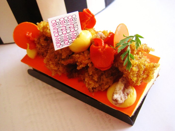 Resembling an underwater coral formation of sorts, the “Secret Business Carrot Cake” ($9) comprised a cheesecake base, layered with tempered white chocolate, lemon curd droplets and sponges of carrot cake and candied carrots.