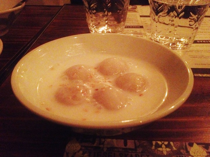 Snuggled along the antique fair street that is Hollywood Road, Chachawan is a no-reservations. bar-cum-restaurant done up in a quasi-dilapidated warehouse style so favoured by the hip and trendy. But unlike traditionally pretentious hipster hangouts, one will not encounter condescension nor alienation here. Pulsating with music and people, and the fire-heat of its food offerings, it’s one of our favourite pre-dinner or post-dinner cocktail hang outs (being slightly too noisy and chaotic for us at dinnertime). Of all the desserts, the showstopper is the “Kanom Dtom Dumplings,” glutinous chewy balls floating in a warm sea of salted coconut cream and flecked with peanut flakes. Salted caramel trend, move over please!