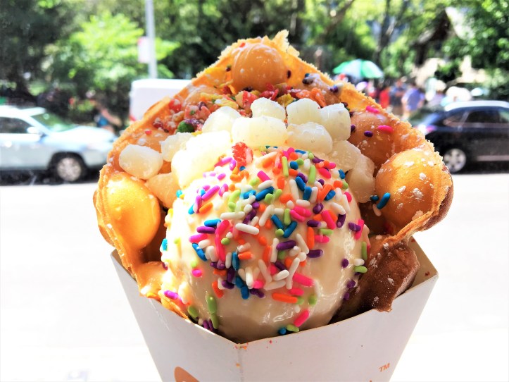 There’s a lot of concerned chatter in Asia about the slow demise of street food vendors – of how the old men and women who sweated and toiled under the extreme heat of the tropics and of their respective stovetops are no longer being replaced by the new generations; and of how big corporations (and politics) have started to sweep the vestigial remnants into the inauthentic atmosphere of glittering glass-and-steel shopping complexes. Yet, fear not, these Dessert Correspondents say, just as wildlife finds a way to regenerate in the aftermath of a nuclear fallout, history can live on in different ways. Many a street food delicacy is slowly filtering its way across the world, seeking out, and finding, a more global audience of food lovers. Egg waffles. Case in point. Here’s a quartet of the most scrumptious egg waffles re-imagined, NYC-style.
