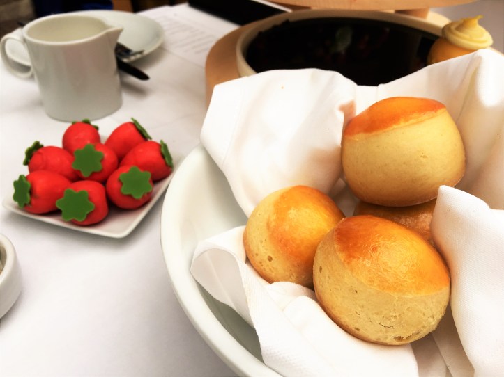 Resembling fried Chinese man tou buns, the scones at Dominique Ansel were probably the most symmetrically round and most perfectly golden creations that these Dessert Correspondents have ever had the pleasure of nibbling. The accompanying condiments were presented in the most creative way — tap your spoon against a strawberry chocolate, crack it open to reveal a centre of cream and jam. The sweet end of the afternoon tea reinforced why Dominique Ansel surpasses most of the vividly-coloured, gloriously crazy, but-oh-so-completely-not-edible Instagrammable desserts bombarding cyberspace. Appearance aside, his desserts are actually, edible. Indeed, that is an understatement – they are exquisitely delicious, if you can bear to disturb the delicate elegance of his works. The “Bud” was a delicate cluster of white chocolate petals perched on a lavender meringue ball with a heart of passionfruit gelee. The “Flower” was rooted in cookie crumbs, and exploded with vanilla and lemon tones. Both “Blossom” and “Full Bloom” were chocolate nests, the first featuring soft spikes of meringue, mascarpone mousse, and tart cherry, and the second setting the indulgent finale with rose-accented brown butter, strawberry and chocolate.