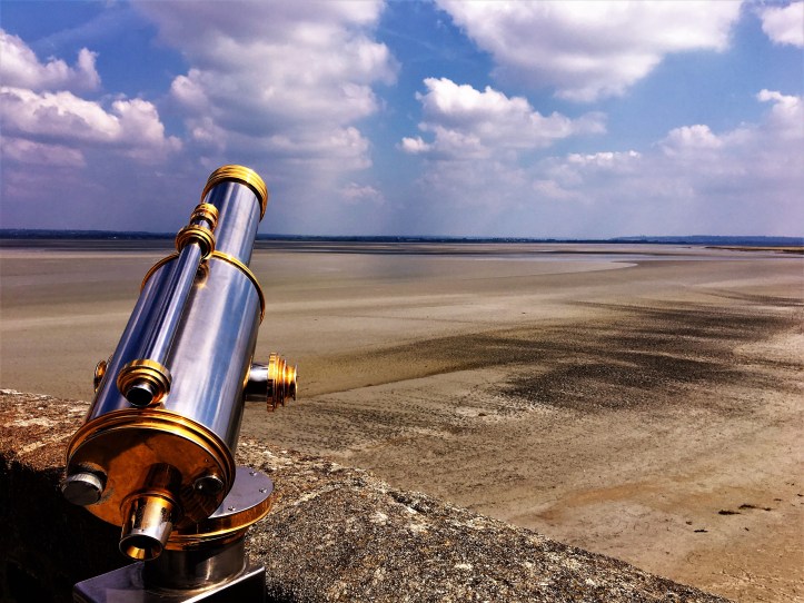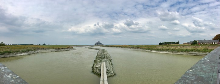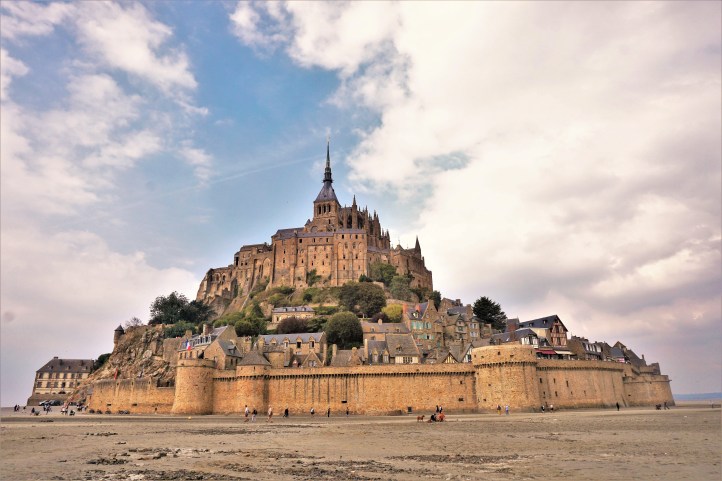 We can skim through a thesaurus to avoid a thousand cliched adjectives, but truly, the only word to describe such an experience, is “breathtaking.” Such is what these Dessert Correspondents felt when we visited UNESCO heritage site, Mont St Michel. Imagine having to deal with the stark fluorescent lights and harsh noises of Paris’ Gare du Lyon, an early morning train ride across the French countryside, tunnelling through mists in the pre-dawn, even before the farmhouses have awakened. Follow this with a bus trip to a windswept parking lot, queuing with throngs of tourists as the sunlight struggles to glint through thick clouds, and then a shuttle bus. And as this shuttle trundles along, an odd-looking pyramidal cone appears on the horizon. Closer, closer, and you see the shimmering outlines of a medieval Gothic-style Benedictine abbey, and wreaths of stone fortifications. And then, set against a sky that changes tones every few moments, from stormy grey to the clearest azure blue, you see that this intimidating edifice is completely surrounded by the sea. It’s a veritable, dream-like, Camelot moment.