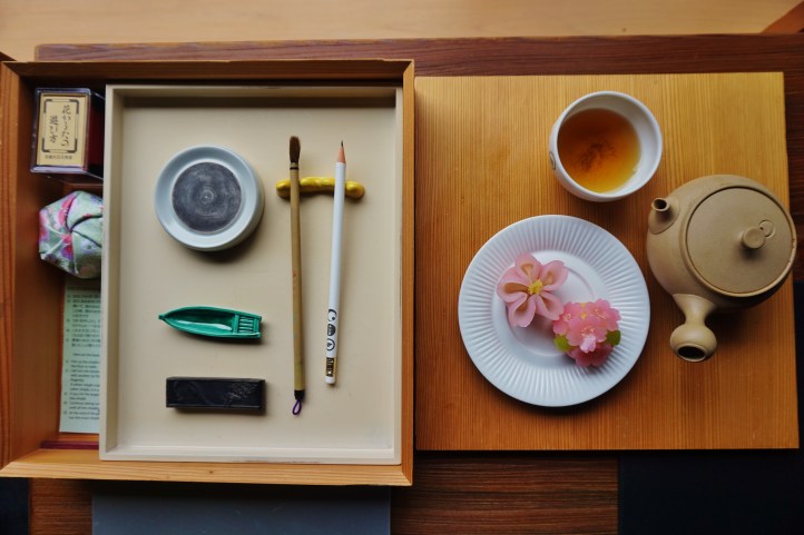 Never in our lives have we found such serenity on a holiday away from home. Hoshinoya Kyoto was a new world and an old world – the traditional quiet elegance of sliding doors and walls papered with Japanese woodblock motifs, contrasted with the modernity of heated wooden flooring, a bed on a raised platform, and of course – because you are in Japan – a toilet so high-tech that you will hunt for the flush button. No matter which room you stay in, you will fall asleep to the murmurs of the river, and awake to the rustle of the surrounding forest and distant chime of Shinto temple bells. In the morning, you will relish an abundant breakfast buffet of bubbling fish and vegetable broth, amid an abundance of privacy. You could partake in the “cultural activities” that the place offers, but truly to absorb Hoshinoya Kyoto, and Kyoto itself, one only needs to sit quietly – in your river-view room or in the gardens outside among the blossoms, maple and bamboo – slow one’s breathing and one’s heartbeat, and simply see. In the afternoon, you inscribe your drifting thoughts into the permanency of a washi paper note, while nibbling at wagashi and intermittently glancing up to take in the floating blossoms.