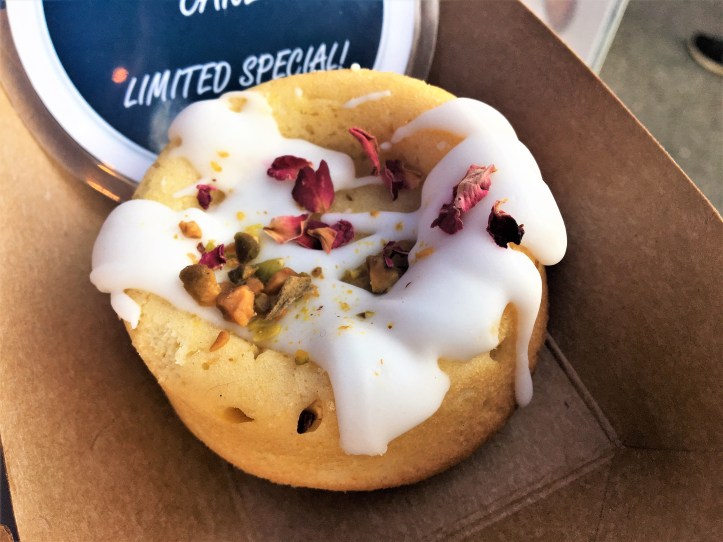 Short and sweet story: Beckoning with one of the longest lines at the Night Market, this storefront offered one of the more substantial $5 meals at the Night Market, of Persian meat stew plopped on a mound of rice. A less-advertised offering is the Persian love cake, a tiny bundt cake, with hints of pistachio and rose.