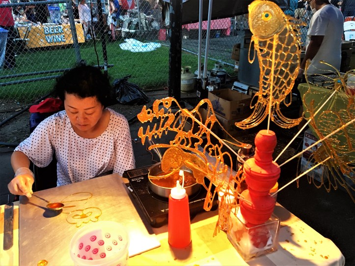 Short and sweet story: When you want to be a child again, don’t bypass one of the seemingly “non-food” stores near the entrance of the Night Market. Here, you can ask for an amazingly intricate dragon or koi fish to be painted for you. And then, lick all that sticky sugar away!