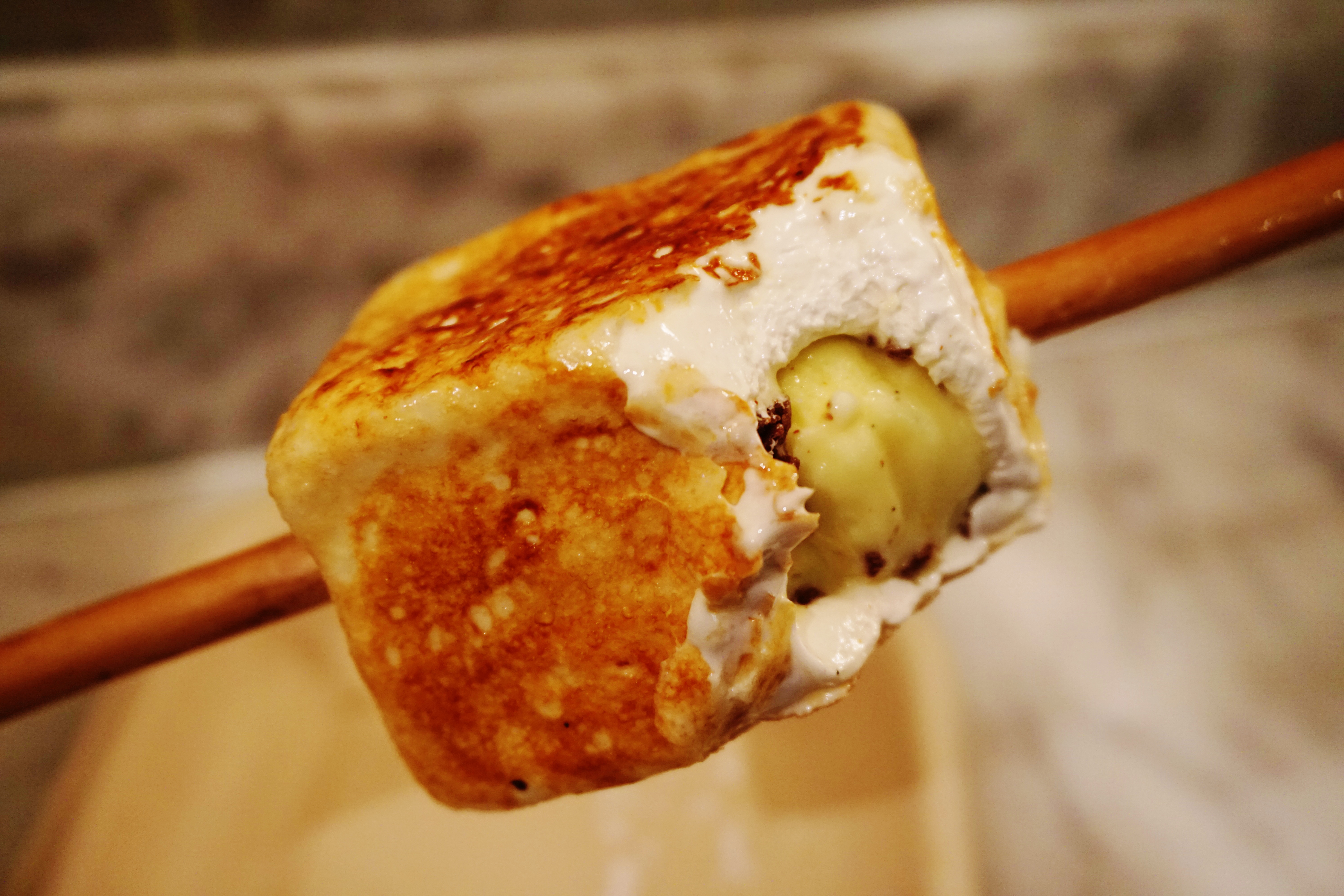 Short and sweet story: The S’mores Sandwich ($6 + tax). A tiny spot in the East Village, Squish specializes in the squishy confectionery that is the marshmallow. We never knew a marshmallow could be more than just the pink or white variety — here, we found marshmallows of many flavours, including peanut butter, pumpkin latte, apple pie, banana pudding, birthday cake. You could choose a skewer of 2-3 cubes to be toasted, but why not be a little gluttonous, and choose the s’mores sandwich. You will need a spoon and fork for this one, unless you don’t mind chocolate lacing your fingers and wrist.