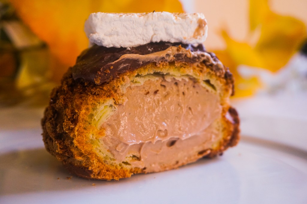 Short and sweet story: Hot chocolate s’mores cream puff ($11 + tax). Bibble & Sip is one of our favourite places for giant cream puffs in the city, and one of our favourite flavours is the one with a marshmallow crown on top of a voluptuous body filled with cream that tastes like hot chocolate. It’s quite the mouthful! All you need is a mug of steaming hot chocolate to dip this little bad boy inside for a double dose of chocolate. 😛