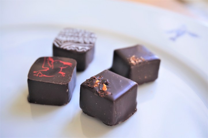 Short and sweet story: Best for most electric flavours. Located on the outskirts of the CBD area, we discovered Socola on a walk after a l-o-n-g business meeting. Socola’s chocolates are not as aesthetically beautiful as for example, the chocolates from Jade, but by golly, they surprise and surpass other S.F. chocolatiers with their very pronounced flavours. For example, we detected cloves in the “Pumpkin Burnt Caramel,” cardammom in the “Masala Chai”, and the prettiest fragrance in the “Jasmine Tea.” Aside from the latter two tea flavours, which are spectacular, the must-try from Socola though, has to be the “Sirracha Flying Rooster.” We have had chilli chocolate before, but this was a big kick of spicy. We needed a glass of milk afterwards. What a wake-up treat, though, from all the other soporific chocolate we have had in NYC!