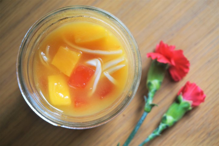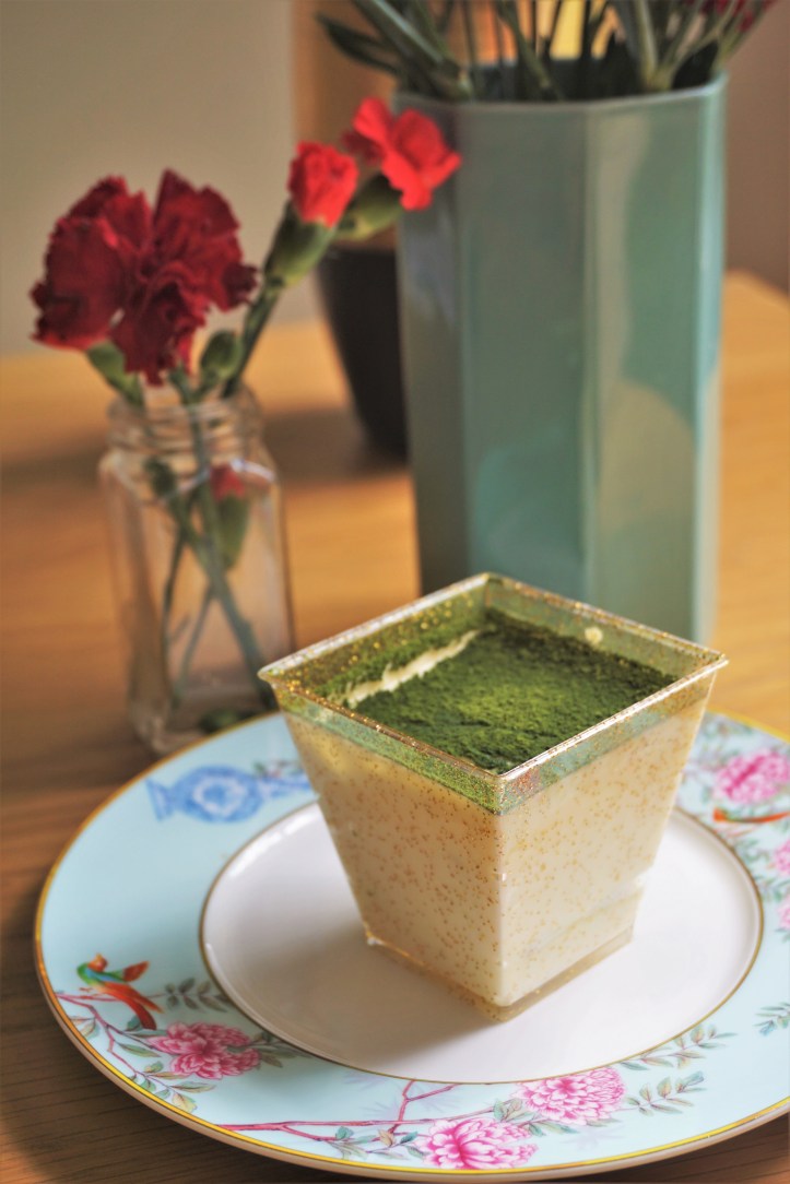 - 2 soft desserts: “Dessert Chawanmushi” and a “Matcha Tiramisu.” If you are a matcha-lover, you would have adored the latter. As we are not, our hearts belonged to the “Dessert Chawanmushi” – essentially a glass jar of silky custard, it sang a song of summer, with coconut, papaya and mango flavours all swirling around.