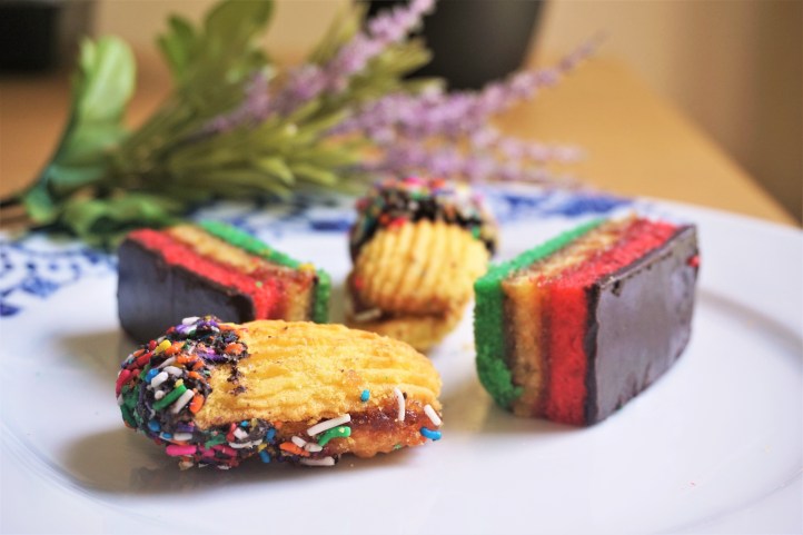 Short & sweet story: Before the Instagram-era of luridly coloured desserts, the American-Italian community had their “Rainbow Cookie,” a creation that we have not seen outside of the States, neither in Italy itself nor in other Italian diaspora communities such as in our hometown of Melbourne. The “Rainbow Cookie” is the Italian flag wrought into dessert form. More cake than cookie, and of three rather than seven colours of the eponymous natural wonder, three wedges of red, beige and green almond cake are sandwiched upon one another with jam and subsequently coated in chocolate.