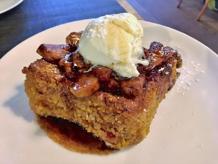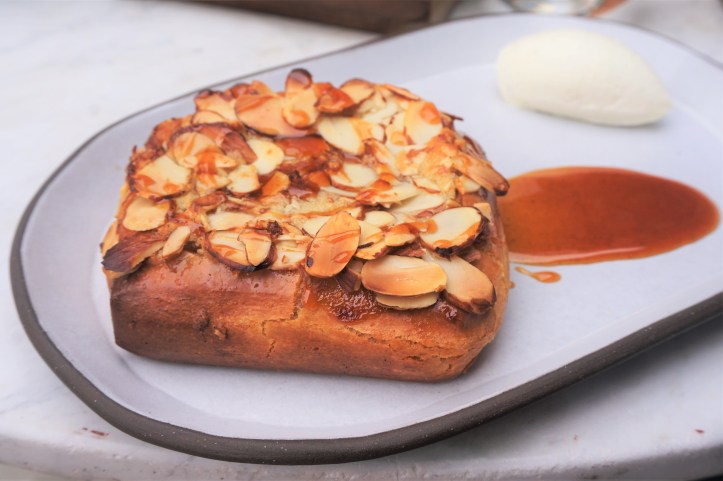 Short and sweet story: Stuffed Almond French Toast ($19+tip/tax). Sometimes, to feel like you are in the glamourous Manhattan that Hollywood has persistently beamed across cinema screens, you just need to dress-up and do a fancy brunch. Especially more so in recent months, when one has been working from home for endless weeks, when Manhattan increasingly resembles an abandoned city, where garbage piles up and the homeless drape themselves over the streets. The Nomad Hotel – one of our favourite luxe places pre-Covid – has come to the rescue, with what must be one of the most sumptuously decorated outdoor spaces. See here for photos of the spectacular setting. Request a seat on the adjacent terrace or under the chandeliers, and order the Stuffed Almond French Toast. It is essentially a decadently moist, almond apple cake of a breakfast dessert.